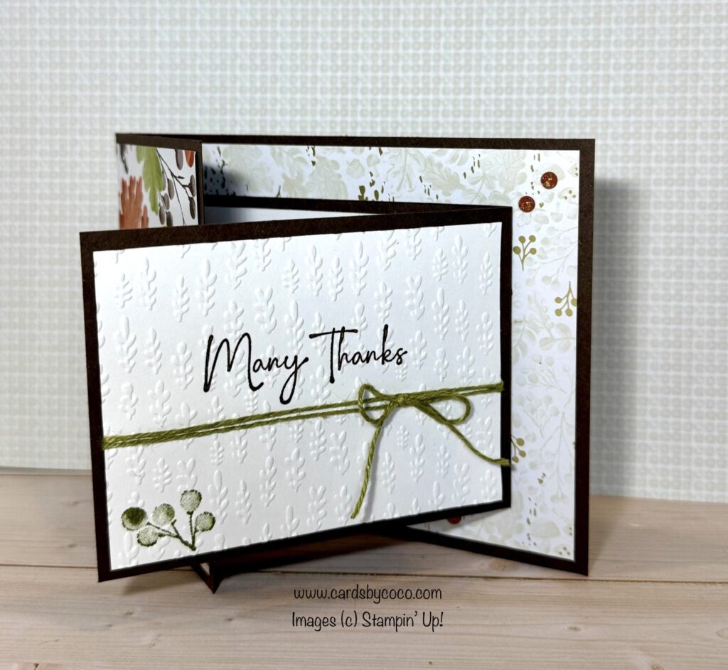I’m showcasing a Joy Fold card using the Gathering Together Suite Collection. If you are currently a demonstrator, you can preorder this suite now. If not, you can add it to your Starter Kit or wait until September. You can find this suite in the Online Exclusives.